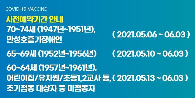 Самые новые твиты от 부산광역시 사상구 (@bssasang): ◀int▶박희응/코로나19 예방접종 cg 현재 사전예약 대상은 5,6월 접종 대상자인 만 60에서 74세 고령자와 만성중증호흡기질환자, 돌봄인력 등입니다. 코로나19 예방접종 만60~74세 사전예약이 6월 3일 마감 됩니다! 오늘(19일) 저녁 8시부터 진행되는 만 53살과 54세 모더나 백신 접종 사전예약 일정과 관련해, 방역 당국이 전문인력을 대기시켜 오류에 대해 신속하게 대응할 예정이라고 밝혔습니다. 코로나19의 임상적 특성 중 하나는 폐렴이 급격히 진행된다는 점이다.